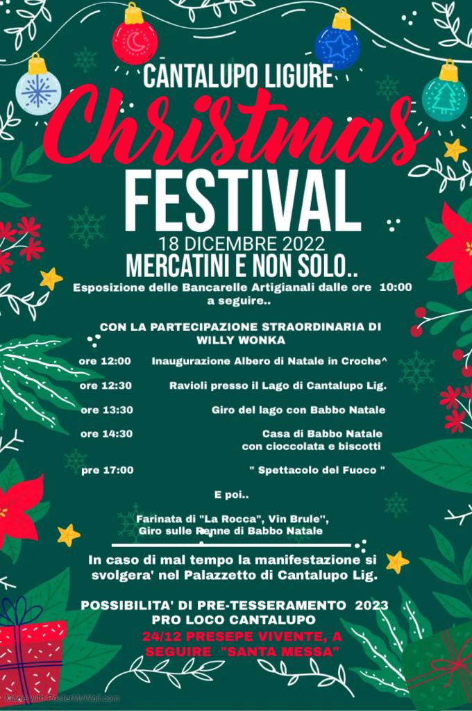 La Pro Loco di Cantalupo Ligure organizza per il 18 Dicembre 2022 i mercatini di Natale e non solo... con il seguente programma: