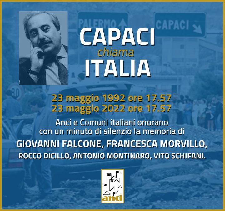 Il presidente di Anci e sindaco di Bari, Antonio Decaro in occasione del trentesimo anniversario della strage di Capaci, ha invitato i sindaci a una iniziativa comune. "I sindaci di tutta Italia saranno uniti nel ricordo ritrovandosi virtualmente insieme, alle 17.57 del 23 maggio, per un minuto di raccoglimento indossando la fascia tricolore, simbolo dell’unità nazionale e dei valori costituzionali".