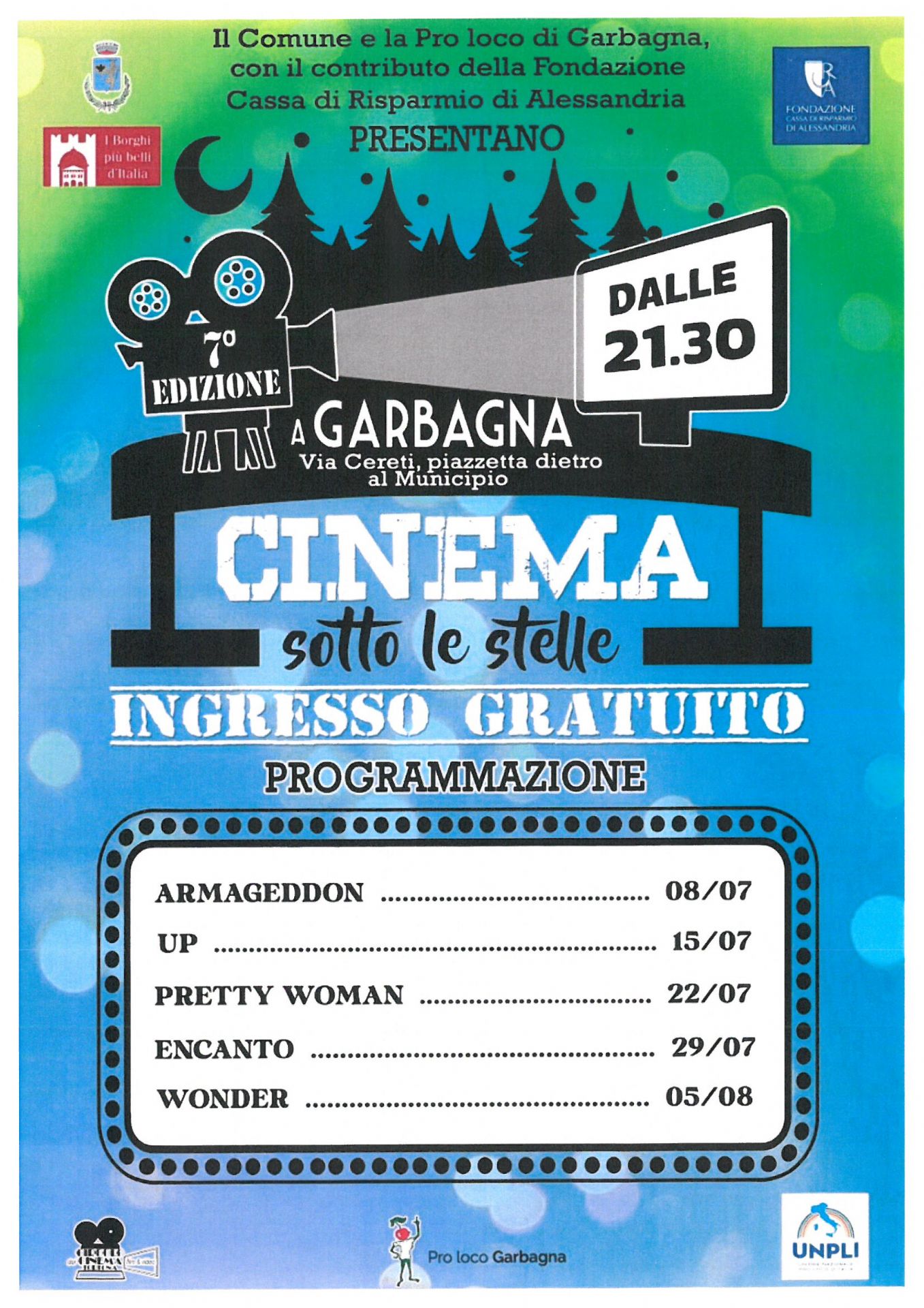 Comune e Pro Loco di Garbagna presentano cinque serate all'insegna del cinema.