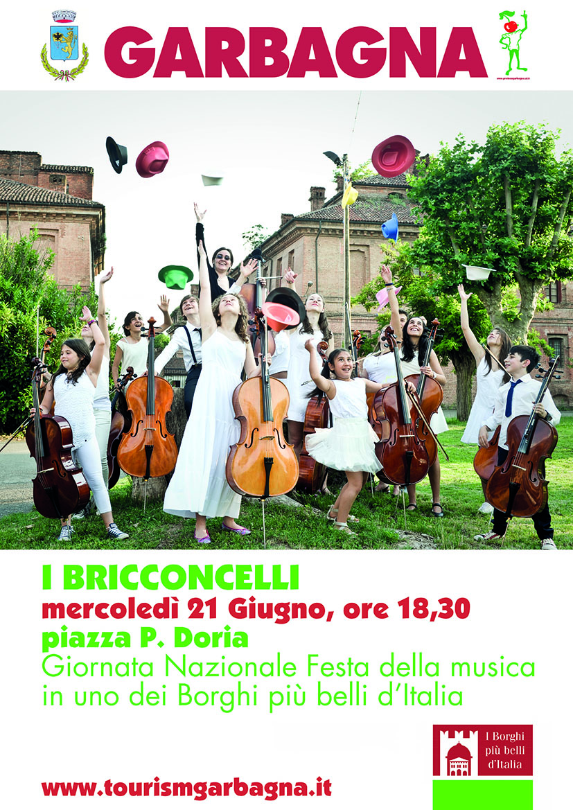In occasione della Giornata Nazionale Festa della Musica, concerto del gruppo dei giovani violoncellisti "I Bricconcelli" in Piazza Principe Doria.
