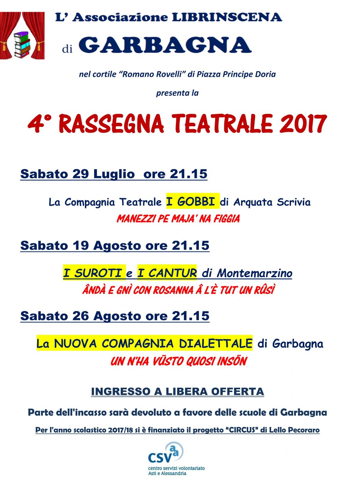 RASSEGNA TEATRALE ESTATE 2017