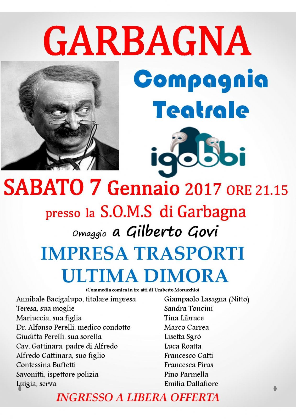 SABATO 7 GENNAIO 2017: Omaggio a Gilberto Govi