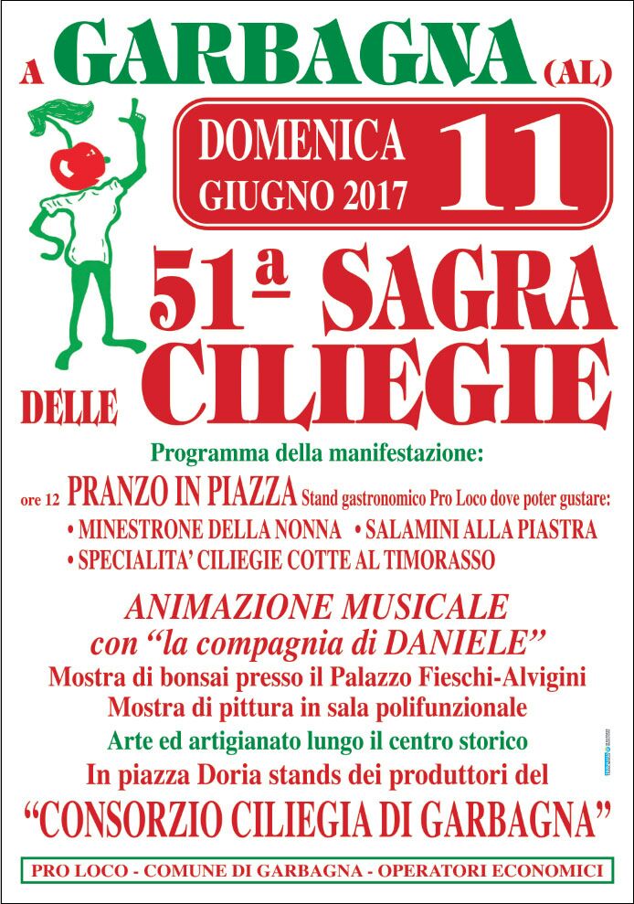 "La SAGRA DELLE CILIEGIE, celebra il frutto che ha reso conosciuta Garbagna come “la collina delle ciliegie pregiate”.