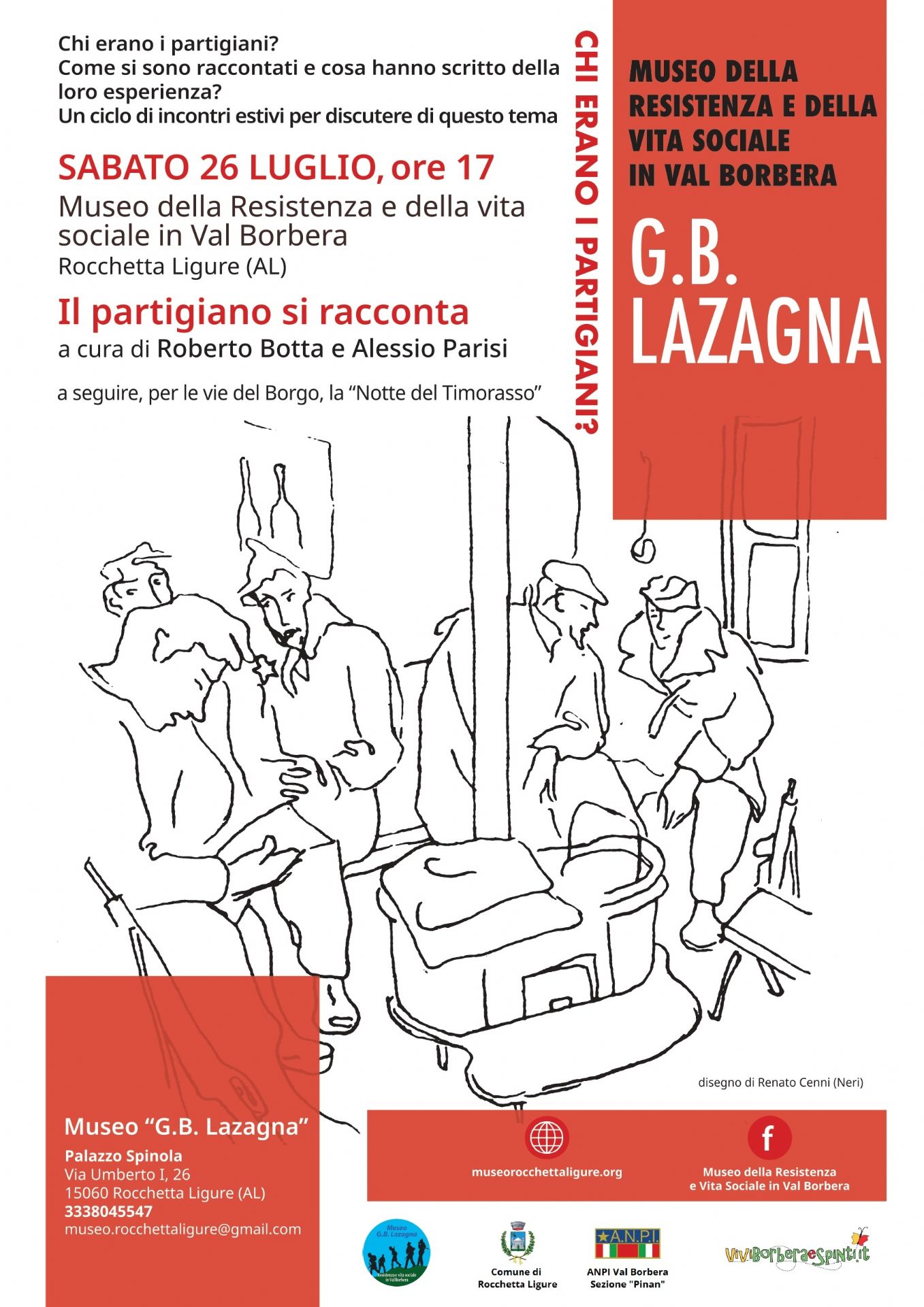 Ultimo incontro della rassegna “Chi erano i partigiani” proposta dal Museo della Resistenza e vita sociale in val Borbera “G.B. Lazagna” che si terrà nell’androne di Palazzo Spinola di Rocchetta Ligure 𝐬𝐚𝐛𝐚𝐭𝐨 𝟐𝟔 𝐥𝐮𝐠𝐥𝐢𝐨 𝐚𝐥𝐥𝐞 𝐨𝐫𝐞 𝟏𝟕.𝟎𝟎.