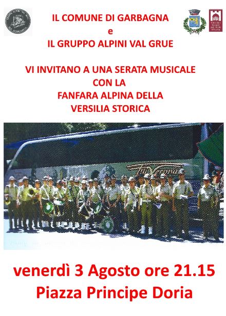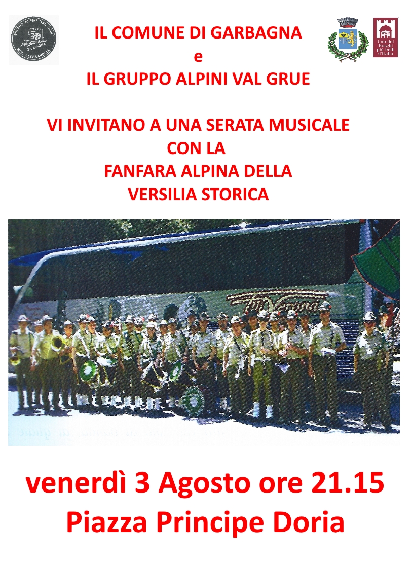 Venerdì 3 agosto nella splendida cornice di Piazza Principe Doria, concerto della Fanfara Alpina della Versilia Storica.