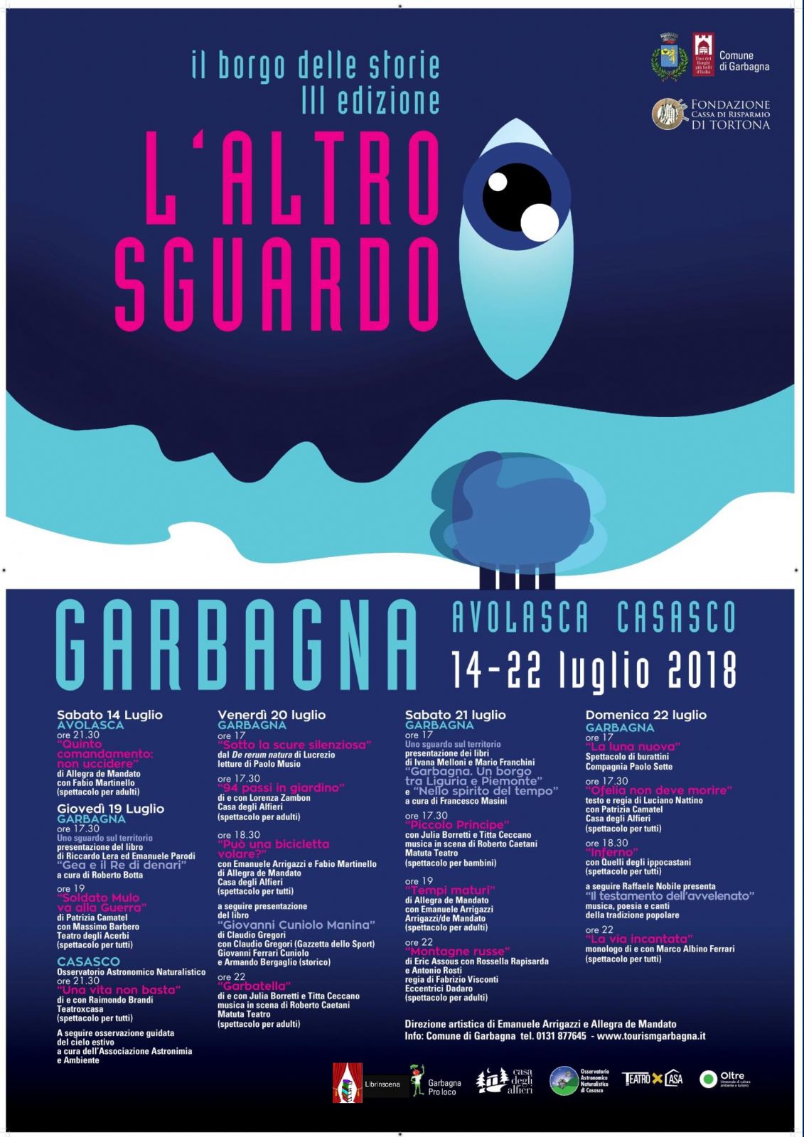 Il Comune di Garbagna organizza la 3° edizione del Festival teatrale "Il Borgo delle Storie". Proposte teatrali rivolte sia ai bambini che al pubblico di ogni età.