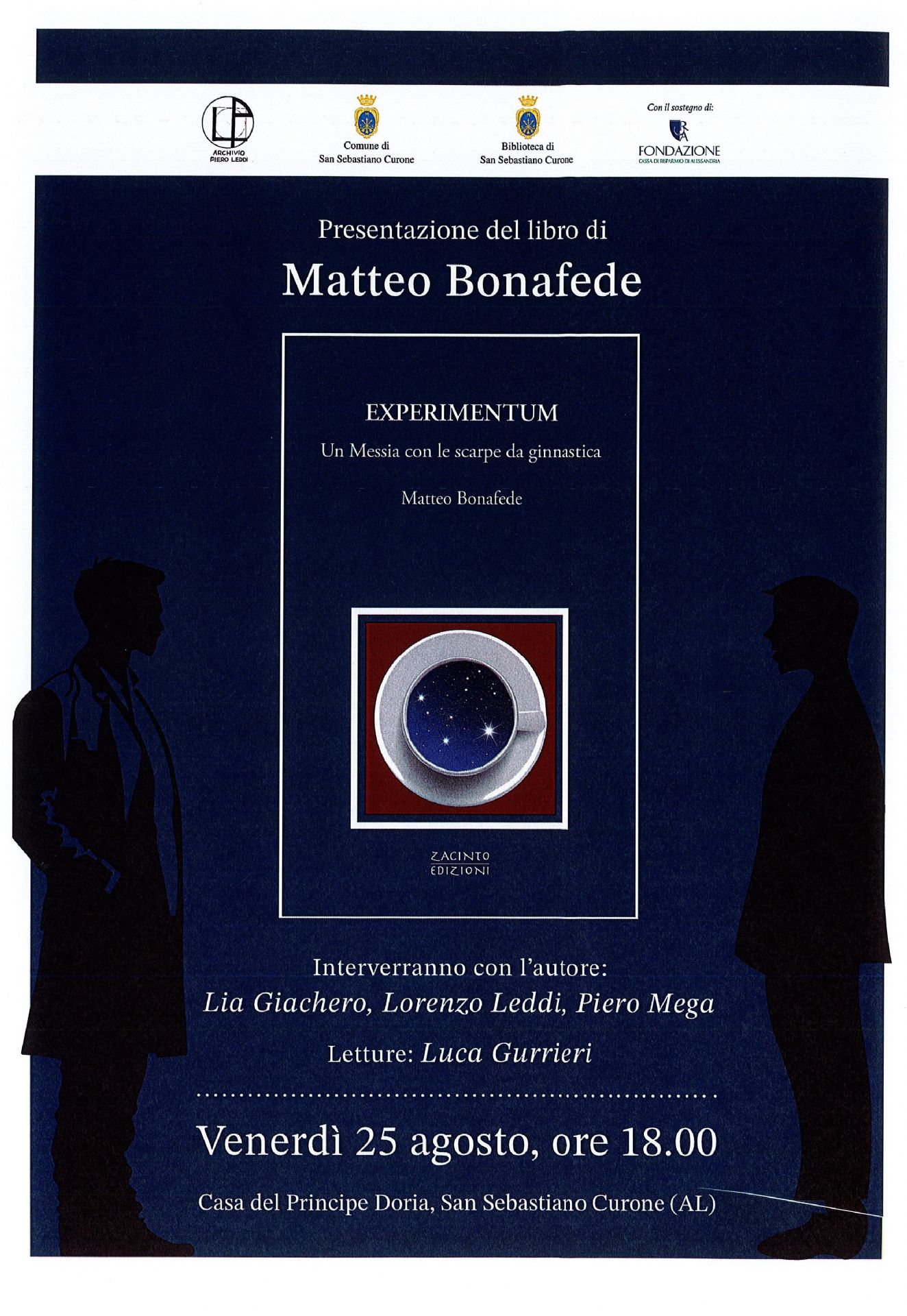 Venerdì 25 agosto alle ore 18,00 presso la Casa del Principe Presentazione dle libro di Matteo Bonafede "Experimentum" Un Messia con le scarpe da ginnastica