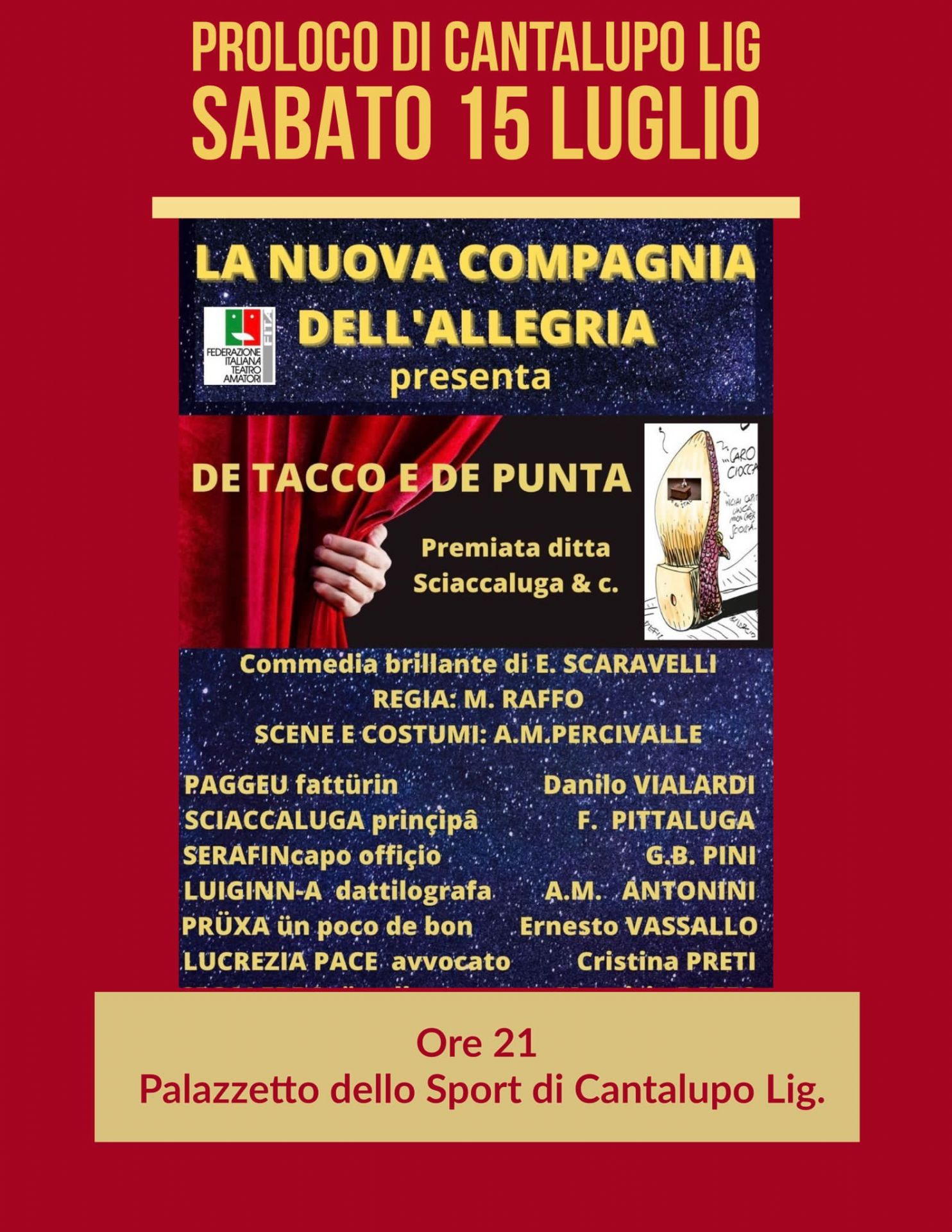 Ore 21: spettacolo teatrale al Palazzetto di Cantalupo Ligure