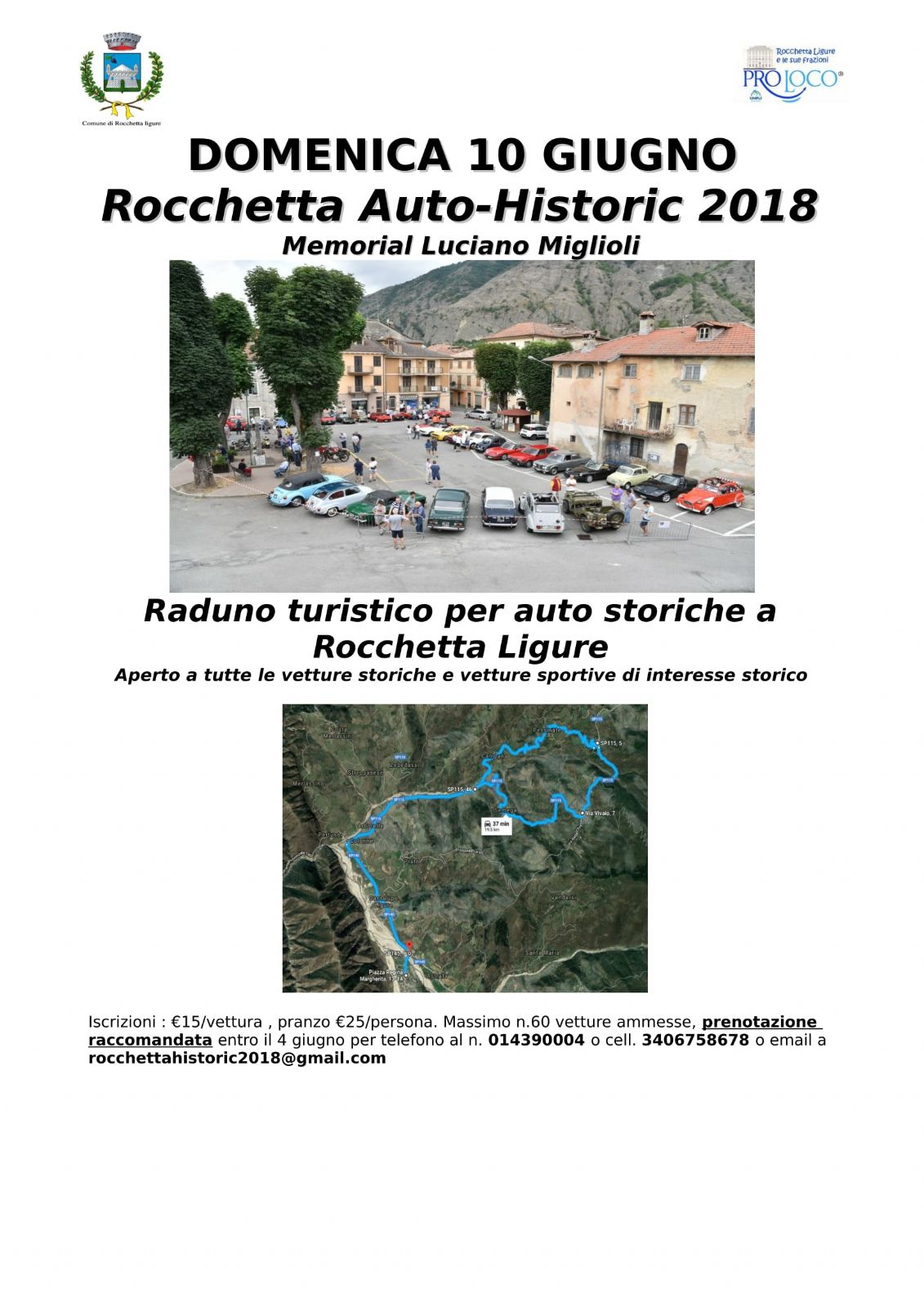 Iscrizioni : €15/vettura , pranzo €25/persona. Massimo n.60 vetture ammesse, prenotazione raccomandata entro il 9 giugno per telefono al n. 014390004 o cell. 3406758678 o email a rocchettahistoric2018@gmail.com