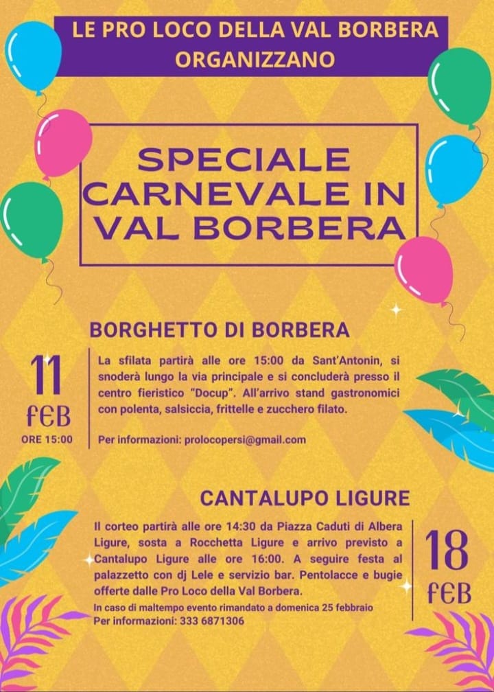 | Organizzazione | Pro Loco della Val Borbera |