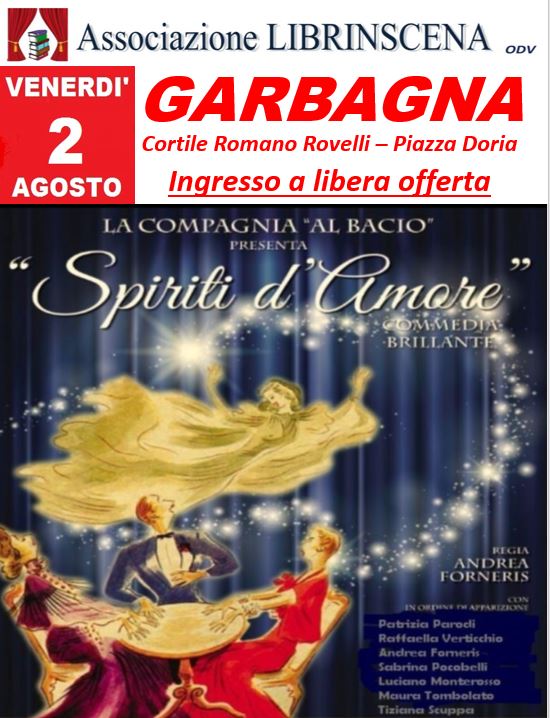 Dopo il successo dello scorso anno ritorna a Garbagna la Co.pagnia al Bacio di Milano in un'altra divertentissima commedia dal titolo "Spiriti d'Amore".