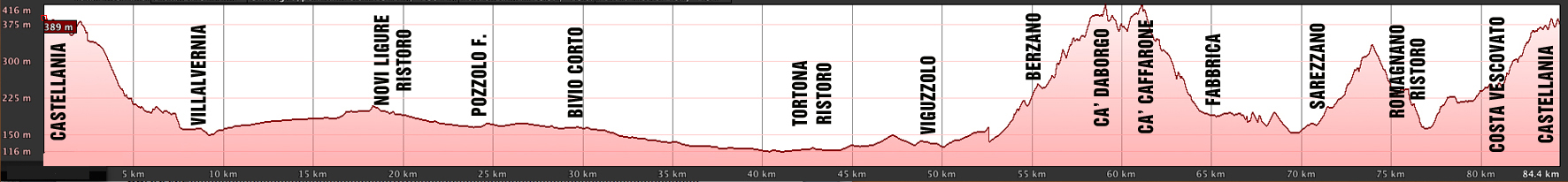 Fatta la scelta di pedalare per il PERCORSO LUNGO, comune per un tratto al PERCORSO MEDIO, dopo la separazione dal percorso CORTO si prosegue dritto per arrivare a BETTOLE DI RIVALTA. Superato il centro abitato si prosegue sempre dritto sino ad arrivare alla CASCINA CARCASSOLA dove inizia il tratto su STRADA BIANCA, lungo circa 8 km. nell'area protetta del Parco Fluviale dello Scrivia, si accanto alla imponente "Abbazia Cistercense" di Rivalta Scrivia e si termina alle porte di TORTONA. Si SVOLTA A DESTRA per percorrere un lungo rettilineo che entra direttamente nella città di TORTONA ed arriva in Piazza Malaspina, dove è previsto il RISTORO e dove i Mitici verranno accolti dalla manifestazione vintage "Bellezze in Bicicletta" - Tortona Retrò...... segue testo completo nel documento allegato sotto.